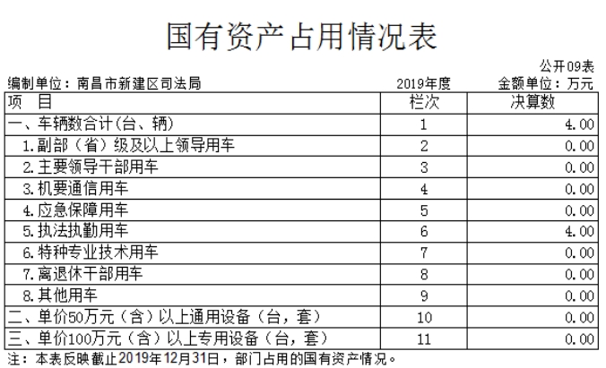 截止2019年12月31日,本部門國有資產占用情況見公開09表《國有資產占用情況表》。主要為4輛執法執勤用車。