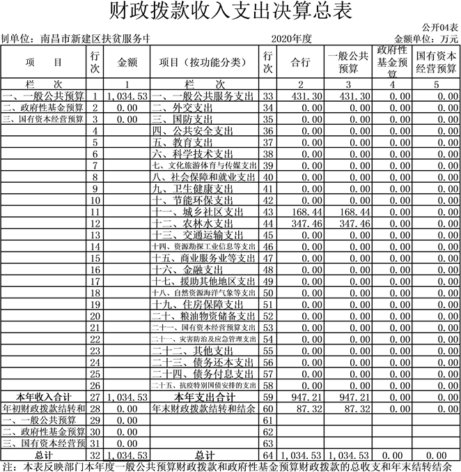 本部門2020年度財政撥款本年支出年初預算數為 1034.53 萬元,決算數為 947.21 萬元,完成年初預算的 91.56 %。其中: