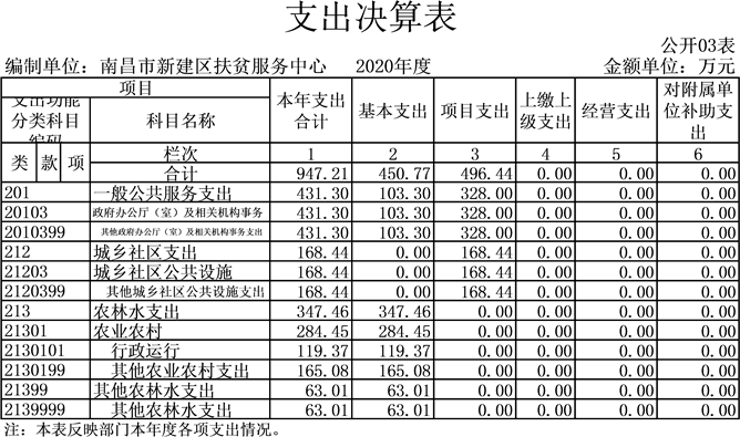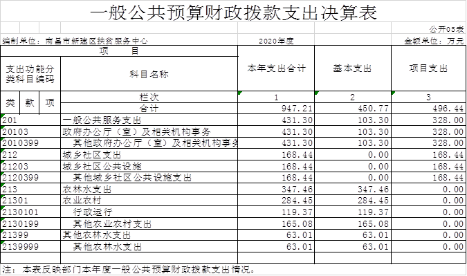2020年度,我部門主要以扶貧事務為主要工作,部門無一般公共預算項目支出。項目支出的列支主要為:支付各鄉鎮的扶貧工作經費、扶貧項目經費,扶貧項目置換資金。文件依據: