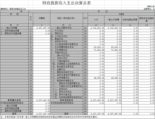 本部門2020年度收入總計 692.75 萬元,其中年初結轉和結余 0萬元,較2019年增加49.3 萬元,增長7.6 %;本年收入合計 692.75 萬元,較2019年增加49.3 萬元,增長7.6 %,主要原因是:收繳的工會經費增多。