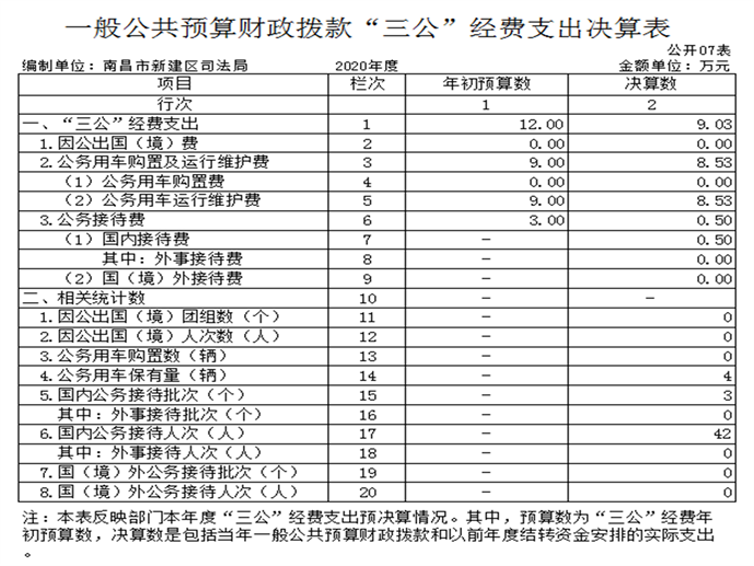 (二)公務用車購置及運行維護費支出 8.53萬元,其中公務用車購置年初預算數為0 萬元,決算數為0萬元,完成預算的0%;決算數較2019年增長0萬元。公務用車運行維護費支出年初預算數為9萬元,決算數為8.53萬元,完成預算的94.78 %,決算數較2019年下降了0.4萬元。