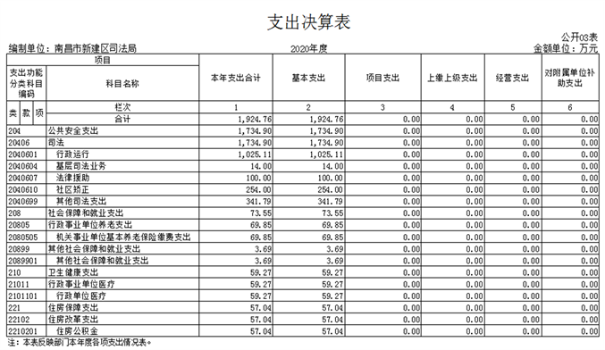 本部門2020年度財政撥款本年支出年初預算數為1924.76萬元,決算數為1924.76萬元,完成年初預算的100%。其中: