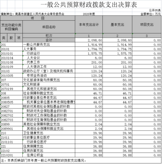 納入本套部門決算匯編范圍的單位共1個,包括:南昌市新建區人民代表大會常務委員會。