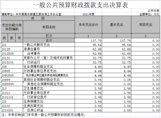 中共南昌市新建區(qū)委臺(tái)灣工作辦公室部門2021年度部門決算