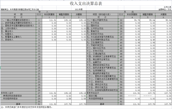 本部門2021年度財(cái)政撥款本年支出年初預(yù)算數(shù)為 111.91 萬元,決算數(shù)為107.76萬元,完成年初預(yù)算的96.29%。其中: