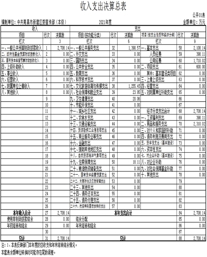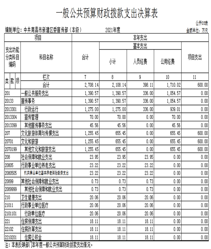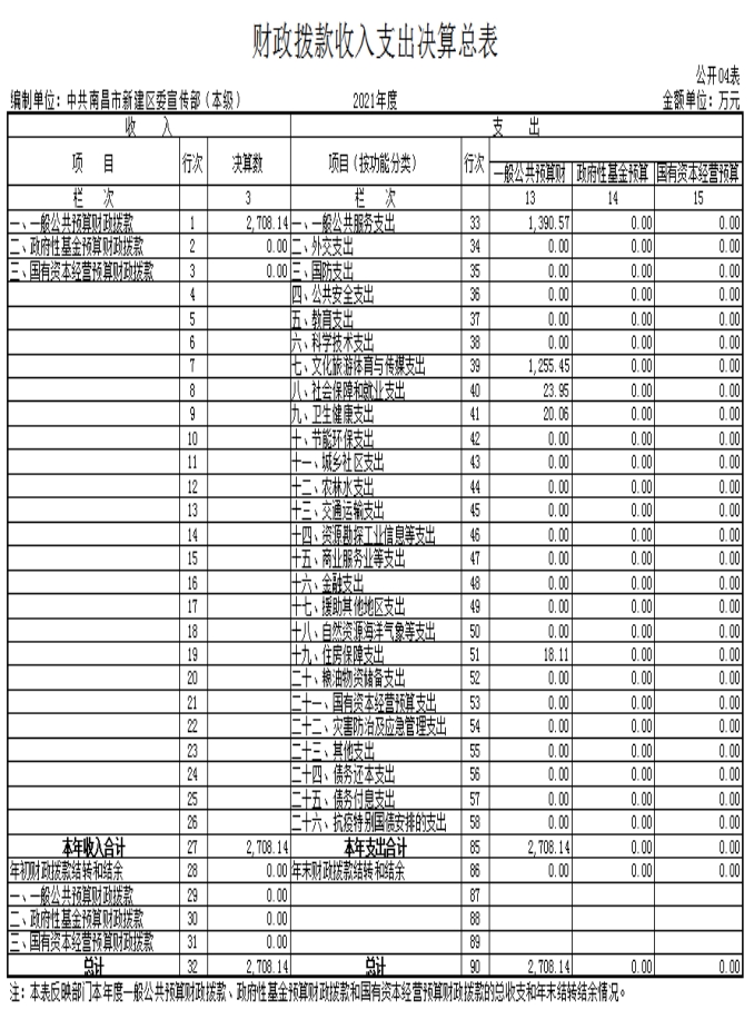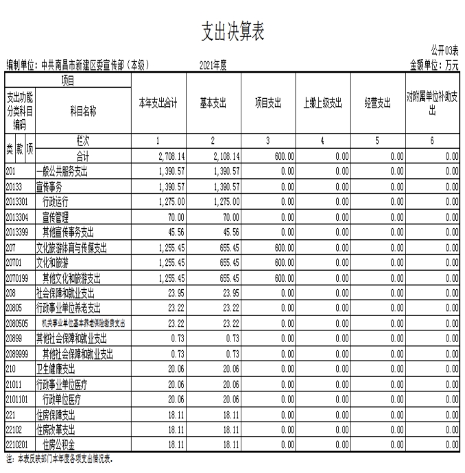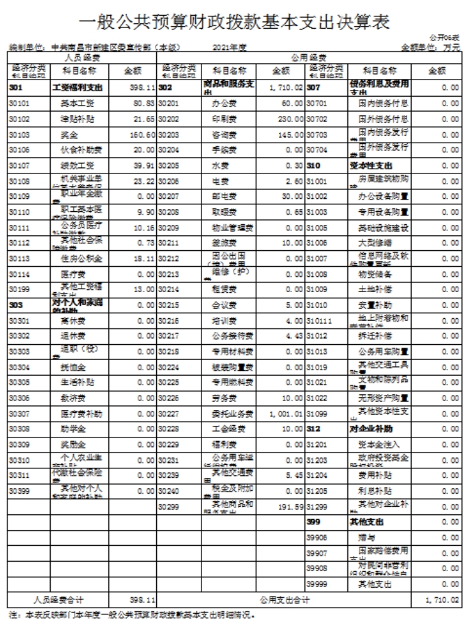 中共南昌市新建區(qū)委宣傳部2021年度部門(mén)決算