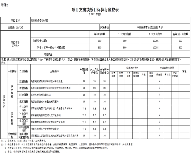 附:《項(xiàng)目支出績(jī)效目標(biāo)執(zhí)行監(jiān)控表》。