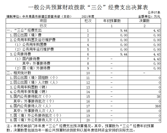 納入本套部門(mén)決算匯編范圍的單位共1個(gè),為中共南昌市新建區(qū)委宣傳部。
