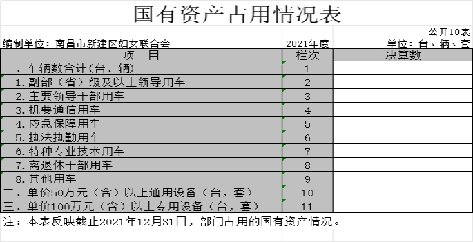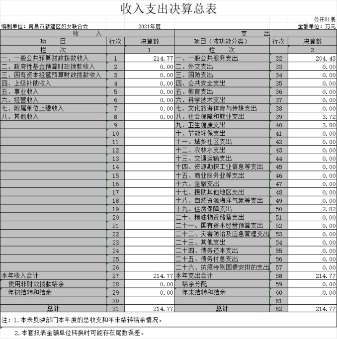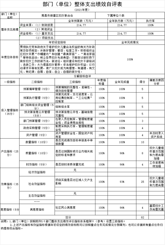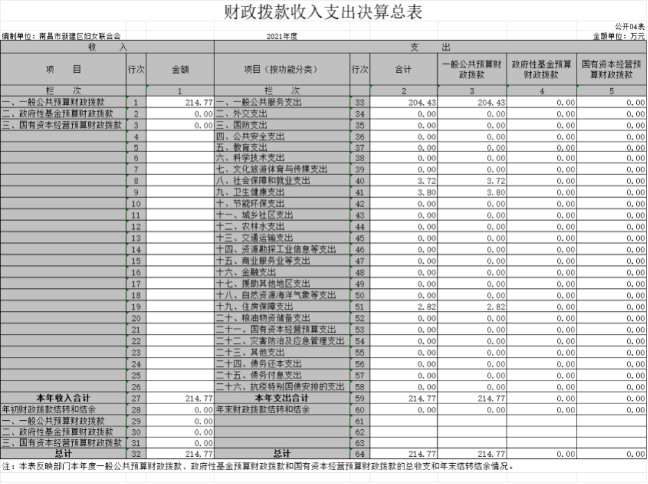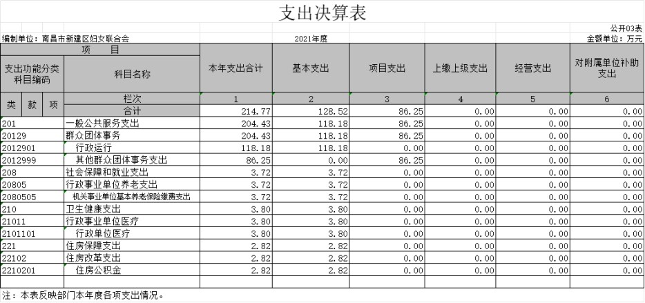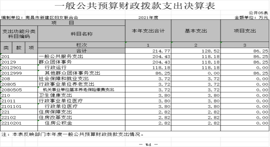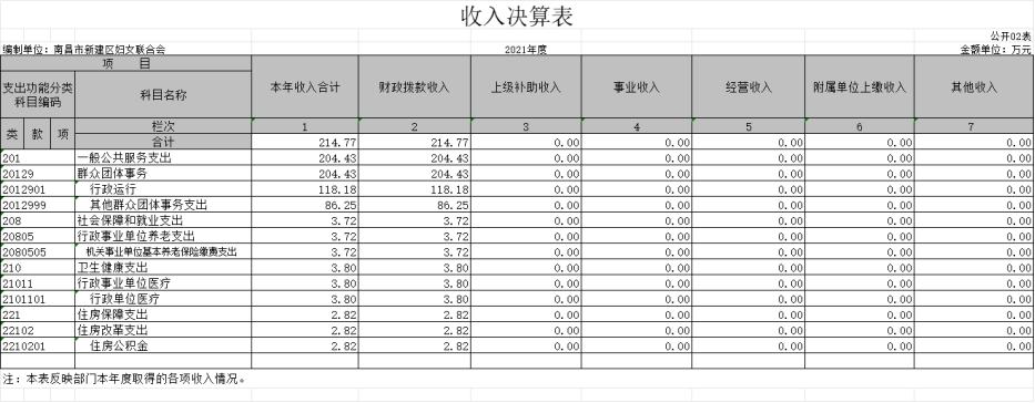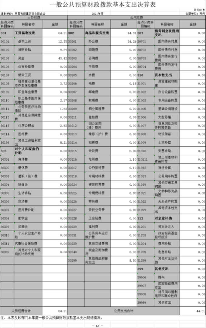 南昌市新建區婦女聯合會2021年度部門決算