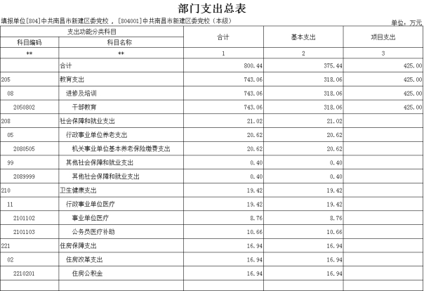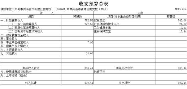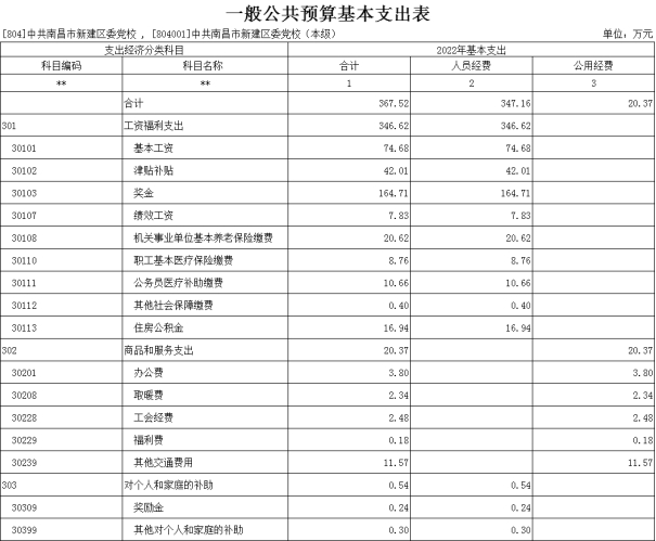 第二部分 中共南昌市新建區委黨校2022年部門預算表