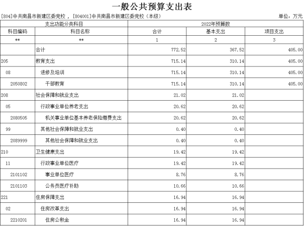 中共南昌市新建區委黨校2022年部門預算