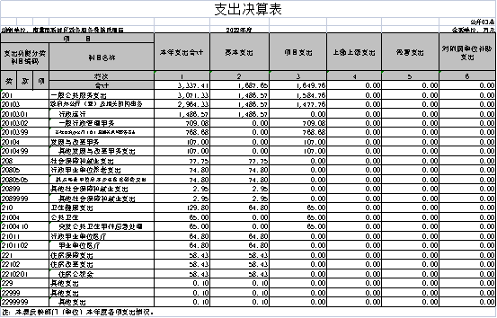 本部門2022年度支出總計3337.41萬元,其中本年支出合計3337.41萬元,較2021年減少2557.42萬元,下降43.38 %,主要原因是:2022年機構改革,行政審批權限及人員劃回原部門;年末結轉和結余0萬元,較2021年增加0萬元,增長0%,主要原因是:年末財政收回預算內資金。
