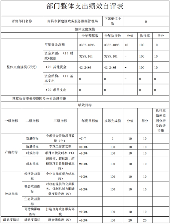 南昌市新建區政務服務數據管理局部門2022年度部門決算