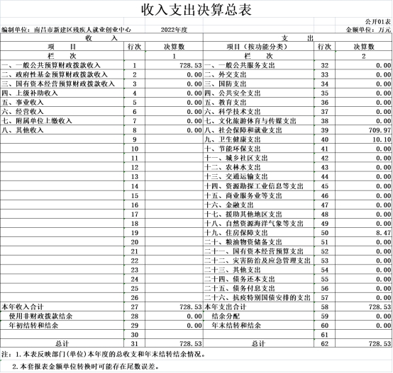 納入本套單位決算匯編范圍的單位共1個,包括:南昌市新建區殘疾人就業創業中心。