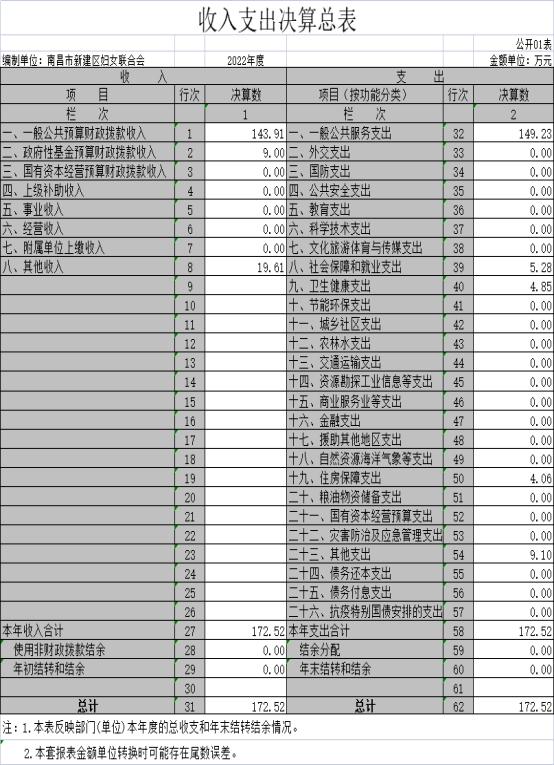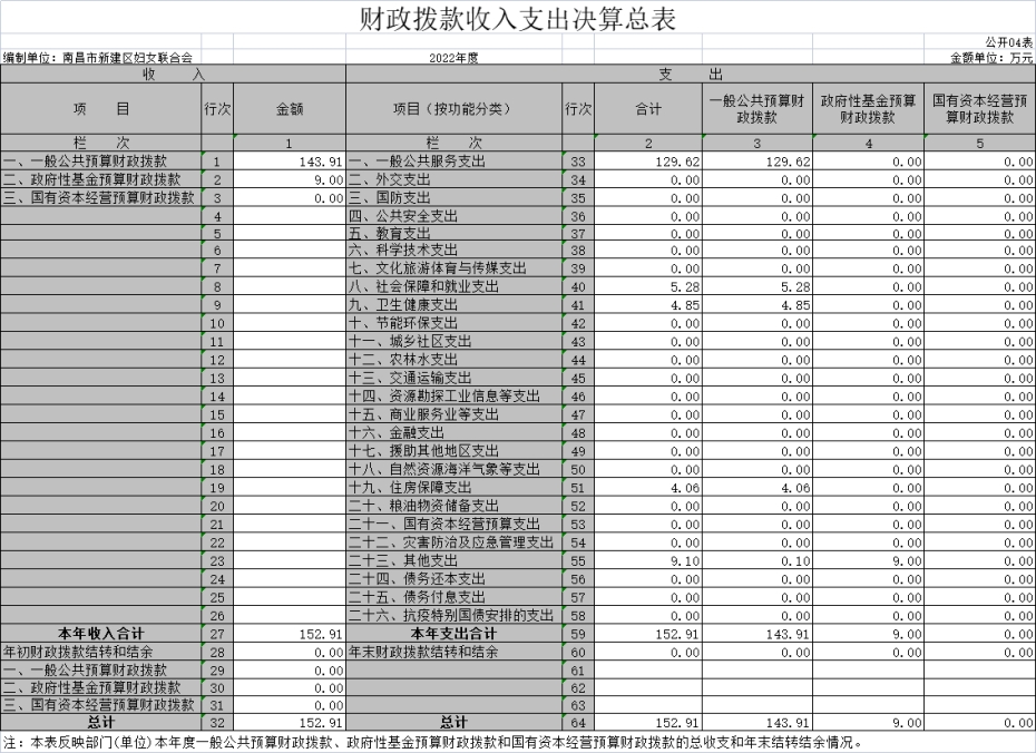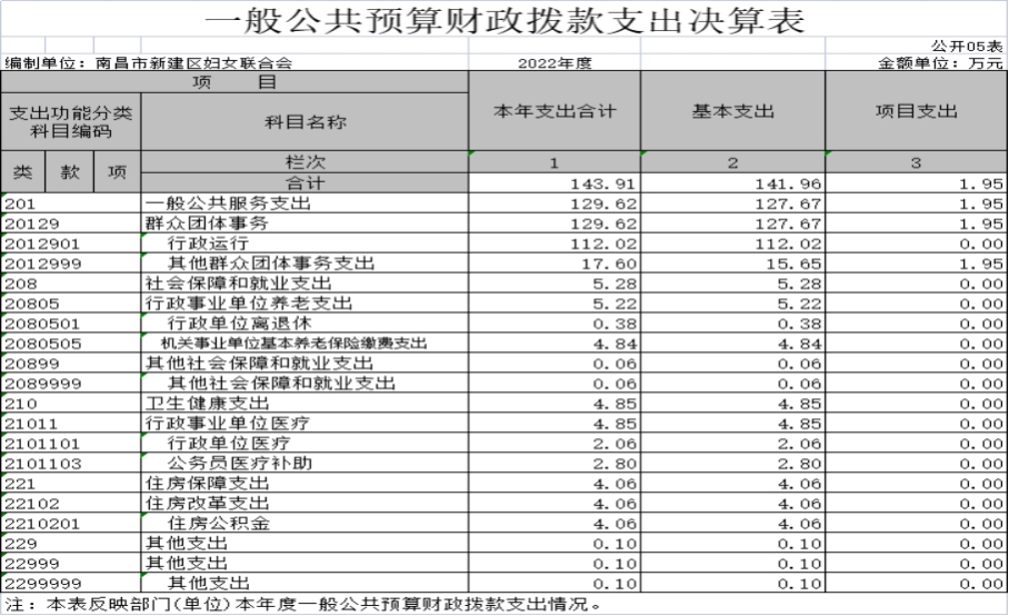 單位2022年區婦女小組長工資待遇補貼項目資金1.95 萬元、區婦聯機關運行經費實際支出數為39.65萬元,所有項目到位資金全部按規定支出,確保項目的正常開展。