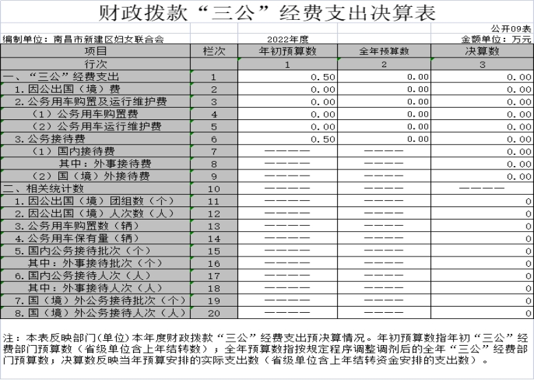 本部門2022年度財政撥款“三公”經費支出年初預算數為 0.5 萬元,決算數為 0 萬元,完成預算的 0 %,決算數較2021年減少0.2萬元,其中: