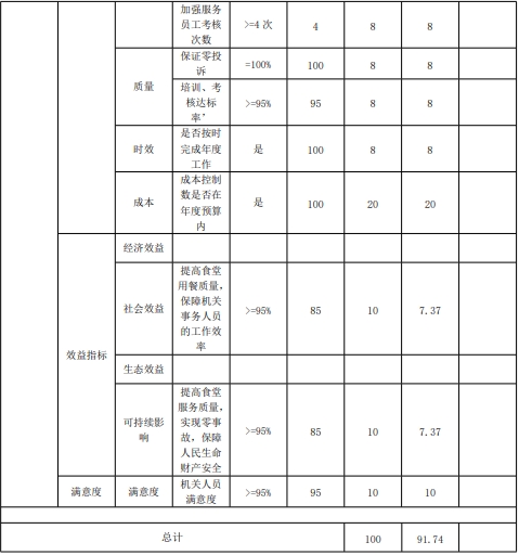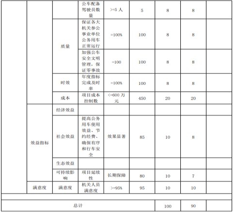 本次績效評價工作采用定性評價和定量評價相結合的方法,總分值為100分。本次績效評價結果分為四檔:綜合得分在90—100分(含90分)為優;綜合得分在80—90分(含80分)為良;綜合得分在60—80分(含60分)為中;綜合得分在60分以下為差。