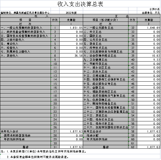 納入本套部門決算匯編范圍的單位共1個,包括:南昌市新建區機關事務服務中心。