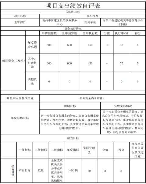 組織對“2022年追加專項經費”、“大院物業外包費”、“公車經費”、“政府大院維護”、“機關服務中心后勤保障經費”等5個項目開展了部門評價,涉及一般公共預算支出1226.93萬元,政府性基金預算支出0萬元,國有資本預算支出0萬元。。