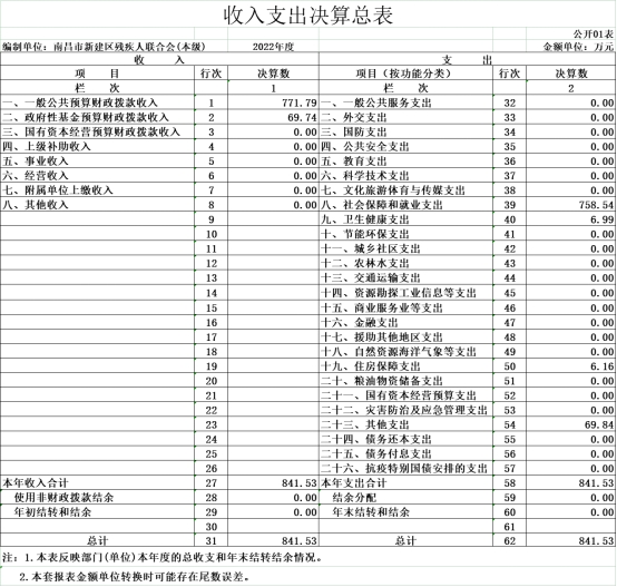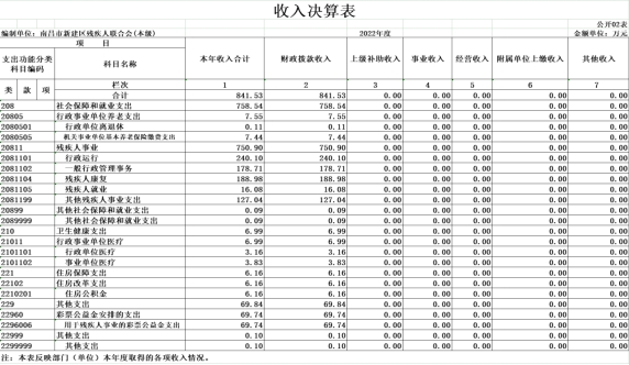 納入本套單位決算匯編范圍的單位共1個,包括:南昌市新建區殘疾人聯合會(本級)。