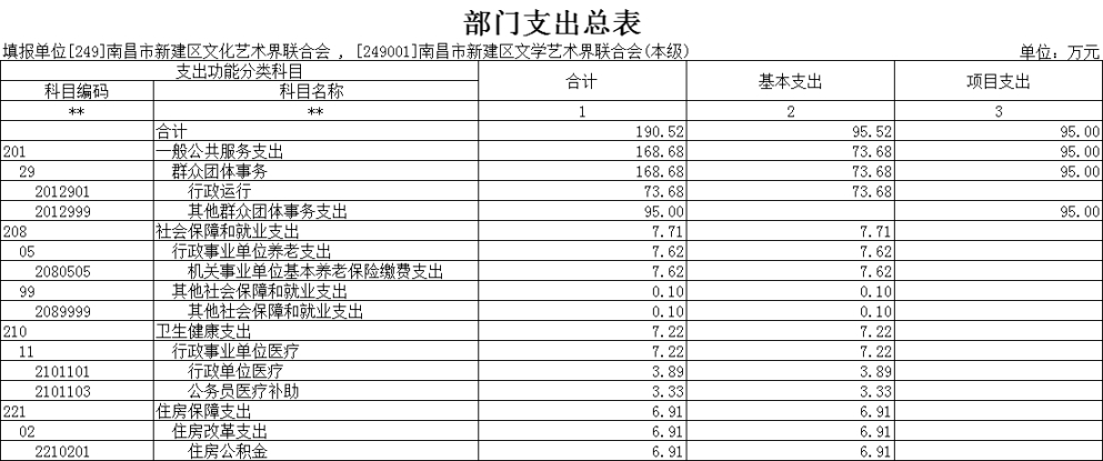 2025年南昌市新建區文學藝術界聯合會部門支出預算總額為 190.52萬元,較上年預算安排增加15.17萬元,上升 8.65%,主要原因是:人員數量較上年相比增加1人;其中: