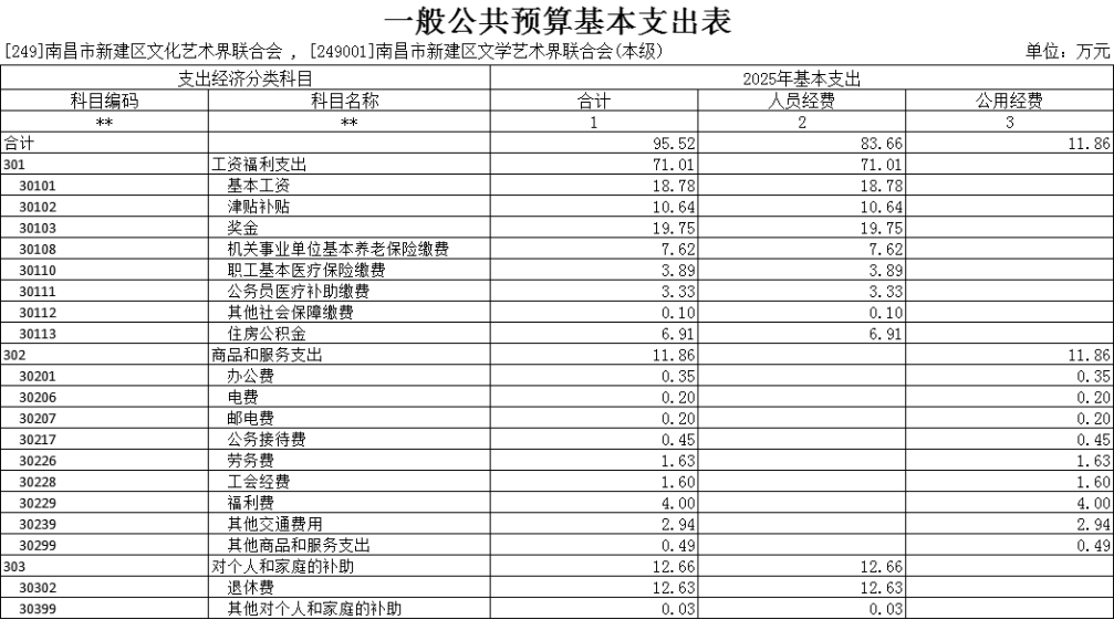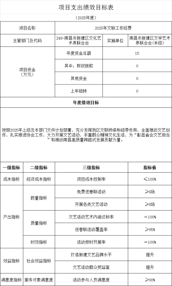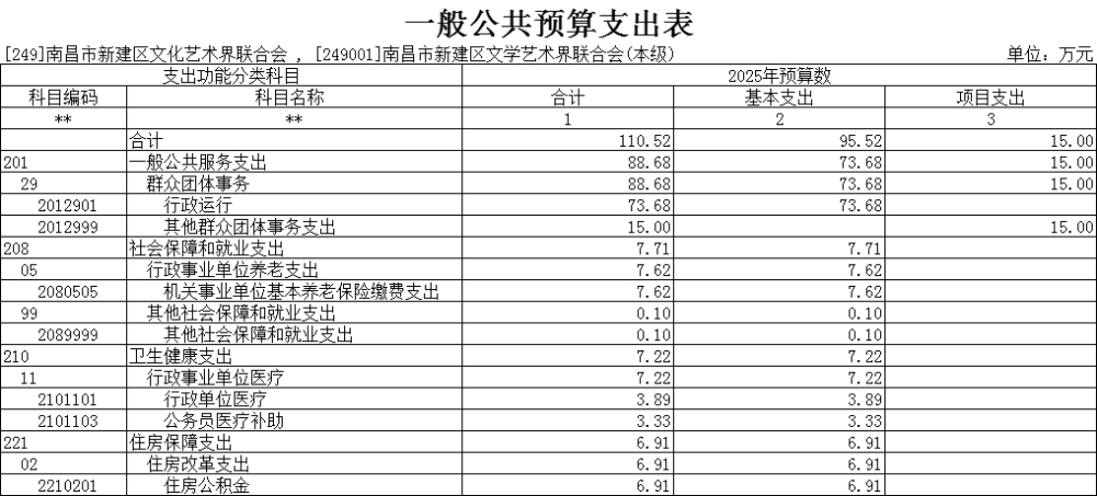 第二部分 南昌市新建區文學藝術界聯合會2025年部門預算表
