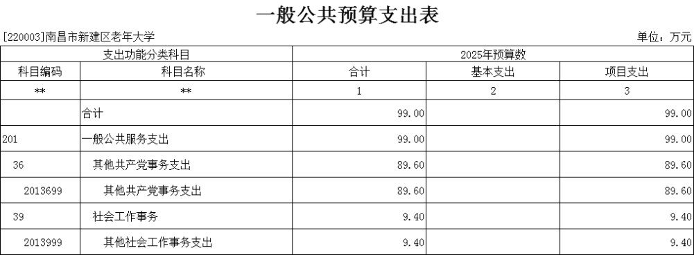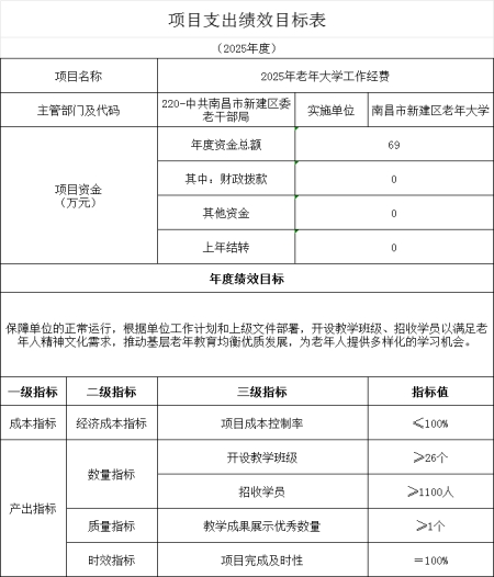 第二部分 南昌市新建區(qū)老年大學2025年單位預算表