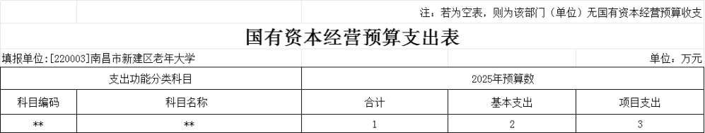 注:若為空表,則為該部門(單位)無國有資本經(jīng)營預算收支。