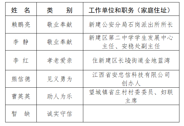 為培育和踐行社會(huì)主義核心價(jià)值觀,選樹道德典型,弘揚(yáng)中華傳統(tǒng)美德,推動(dòng)我區(qū)“我推薦我評(píng)議身邊好人”工作向縱深發(fā)展,打造“新建好人”品牌。根據(jù)區(qū)文明辦關(guān)于印發(fā)《“新建好人”推薦評(píng)議活動(dòng)實(shí)施方案》的通知(新文明辦〔2022〕1號(hào))要求,在全區(qū)各鄉(xiāng)鎮(zhèn)(開發(fā)區(qū)、街道、管理處)、各部門、各單位的大力支持和配合下,歷經(jīng)推薦申報(bào)、征求意見和組織評(píng)審、網(wǎng)上公示等程序,決定對(duì)被評(píng)為2024年第一期“新建好人”的賴鵬亮、李靜、李紅、熊信德、曹英英5名同志進(jìn)行通報(bào)表揚(yáng)。