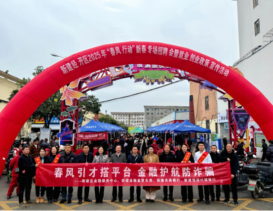 此次活動以“春風引才搭平臺,金融護航防詐騙”為主題,由新建區金融服務中心牽頭,聯合新建金融監管支局、新建農商行、新建恒通村鎮銀行等駐區金融單位共同舉辦,旨在提升群眾的防非反詐意識,守護好大家的“錢袋子”。新建區金融服務中心黨組書記杜建平、新建金融監管支局局長劉慶菲、新建經開區常務副主任張錕出席活動,為活動注入堅實力量,將金融安全知識送到了求職者和居民身邊。