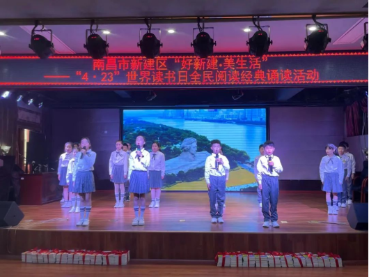 為喜迎第29個世界讀書日,深入貫徹落實黨的二十大精神, 4月23日上午,由南昌市新建區文化廣電旅游局主辦,南昌市新建區文化事業發展中心承辦,南昌市新建區第一小學協辦的“好新建?美生活”——“4?23”世界讀書日全民閱讀經典誦讀活動在區第一小學隆重舉行。此次活動的主題為“江右文學 聲聲不息”。
