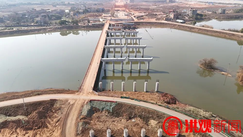 春節假期,項目建設不停工,G320南昌縣向塘至新建區西山段公路新建工程建設現場機械轟鳴,施工人員正忙碌而有序地作業。目前,項目A標段昌南大橋樁基、承臺已全部完成,系梁完成98%,墩柱完成86%,蓋梁完成70%,跨贛東、西大堤連續梁已完成490米,姚灣互通現澆梁已完成400米;A標段其余橋梁樁基完成83%,下部構造完成63%,路基填方完成96%,涵洞完成90%。項目B標段橋梁工程正加緊建設,樁基完成94%,承臺及系梁完成95%,墩柱及肋板完成93%,蓋梁及臺帽完成82%,梁板架設完成29%;路基工程填挖方完成95%,涵洞通道完成95%,級配碎石墊層完成53%。