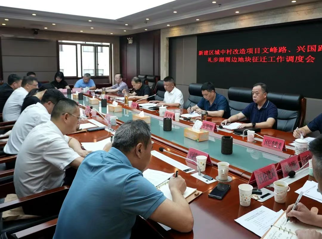 7月5日,區長王成久主持召開全區城中村改造項目文峰路、興國路、禮步湖周邊地塊征遷工作調度會,聽取相關工作匯報,研究部署近期重點任務。區領導夏天明、李和風、萬里晴,新建經開區管委會主任楊冰參加。