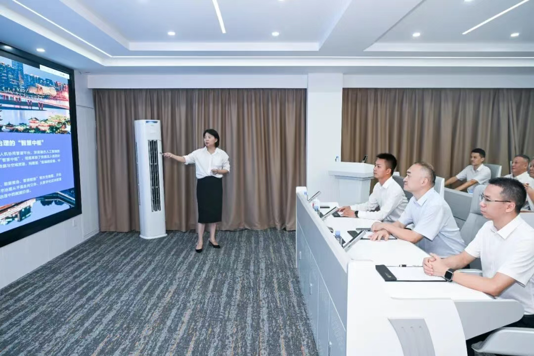 陳奕蒙一行首先參觀了企業(yè)巡檢無(wú)人機(jī)設(shè)備,聽(tīng)取了全市一網(wǎng)統(tǒng)飛平臺(tái)功能介紹,觀看了巡檢無(wú)人機(jī)應(yīng)用場(chǎng)景和實(shí)際使用情況。