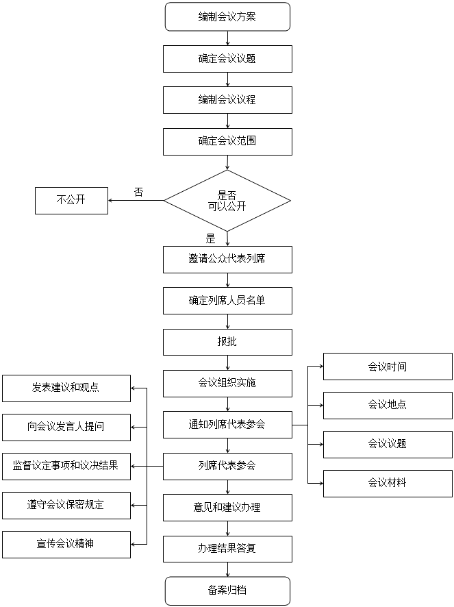 列席會議的公眾代表享有知曉決策草案,聆聽決策起草說明和決策合法性審查機構所作的審查說明、專家意見、部門意見,對決策草案提出建議或意見等權利。