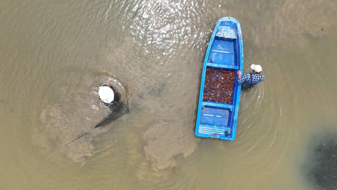 眼下正值小龍蝦上市旺季,在鐵河鄉龍蝦養殖基地,一片繁忙的捕蝦景象,養殖戶們正在水中熟練地將一個個地籠取下,解開籠結,再輕抖幾下,一只只色澤鮮亮的小龍蝦便落入船中,不一會兒便裝滿了運蝦小船。