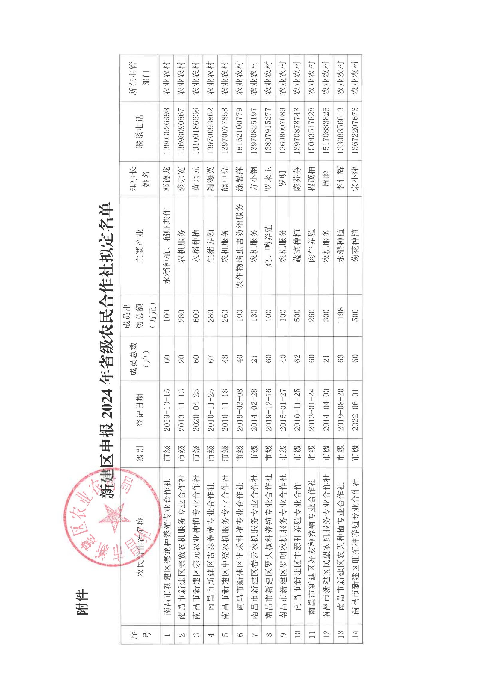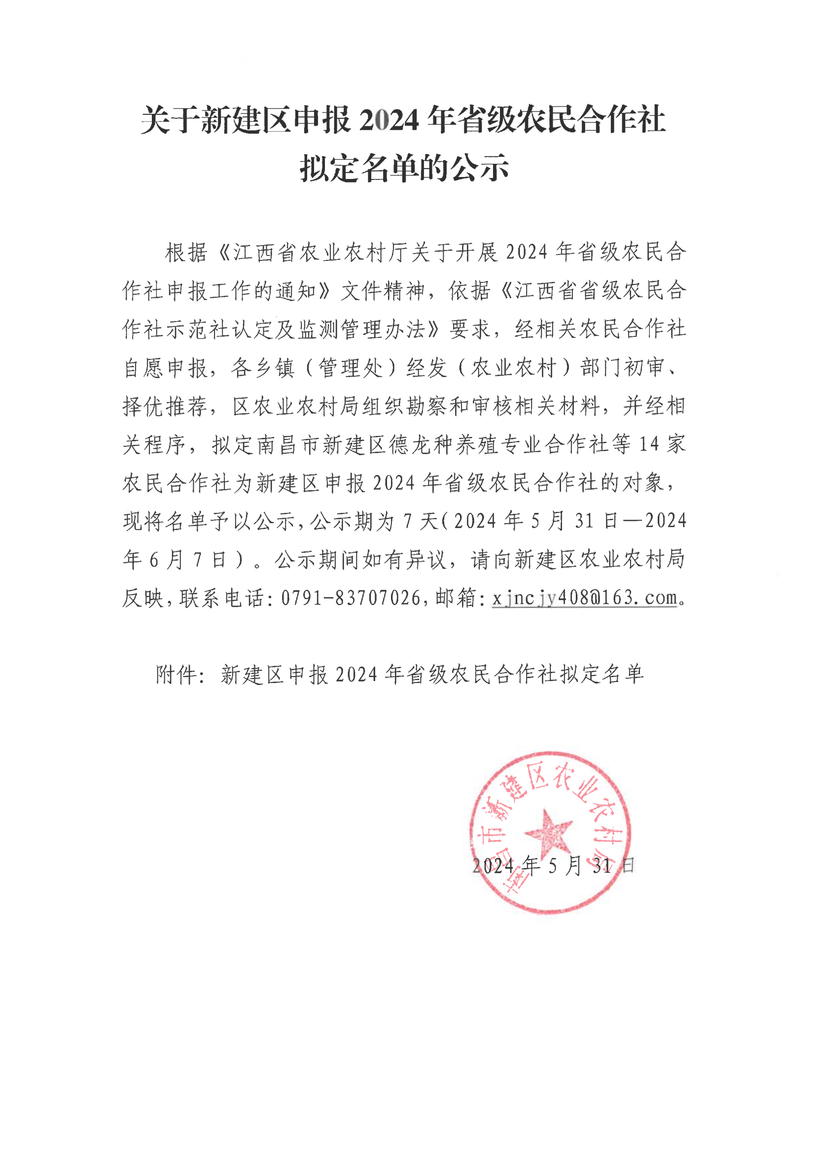 關于新建區申報2024年省級農民合作社擬定名單的公示