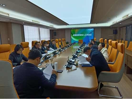 為全力推動2023年度全社會研發投入工作,3月4日,我區研發投入工作會議在新建經開區管委會六樓會議室召開。出席會議的有區委常委、副區長、新建經開區黨工委書記余耀武,區科工局、區商務局、區住建局、區統計局主要領導和分管領導、新建經開區分管領導。會議由余耀武常委主持。會上通報了2023年度全社會研發投入擬填報情況及存在問題,并提出了具體改進措施意見。各參會單位分別匯報了2023年研發投入工作開展情況。與會人員就如何做好研發投入工作,提高填報質量進行座談交流。大家一致表示,將進一步厘清思路、明確目標,采取有效措施做實工作。余耀武同志充分肯定了各單位2023年度研發投入工作,明確了下一步目標思路和工作舉措,并就當前研發投入工作提出了在思想上要毫不動搖、在目標上要毫不動搖、在措施上要毫不動搖、在時間上要毫不動搖“四個不動搖”的要求,高標準、高質量完成研發投入工作任務。